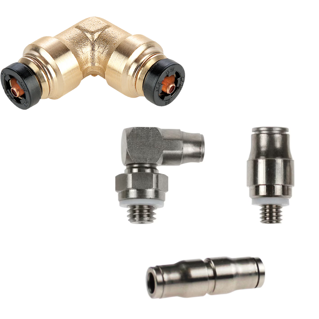 Fabricados em latão (frequentemente niquelizado ou com acabamento de proteção), essas conexões são projetadas para proporcionar montagem com “empurre o tubo até o batente”, sem necessidade de solda ou furação complexa. A gama de variantes permite adaptar para tubos retos, angulares, com rosca macho/fêmea, roscas NPT/BSP ou tubulações métricas.