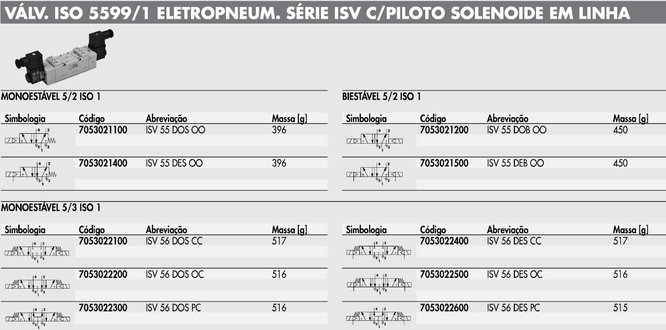Válvula ISO 5599/1 Eletropneumática SÉRIE ISV com piloto solenoide em linha